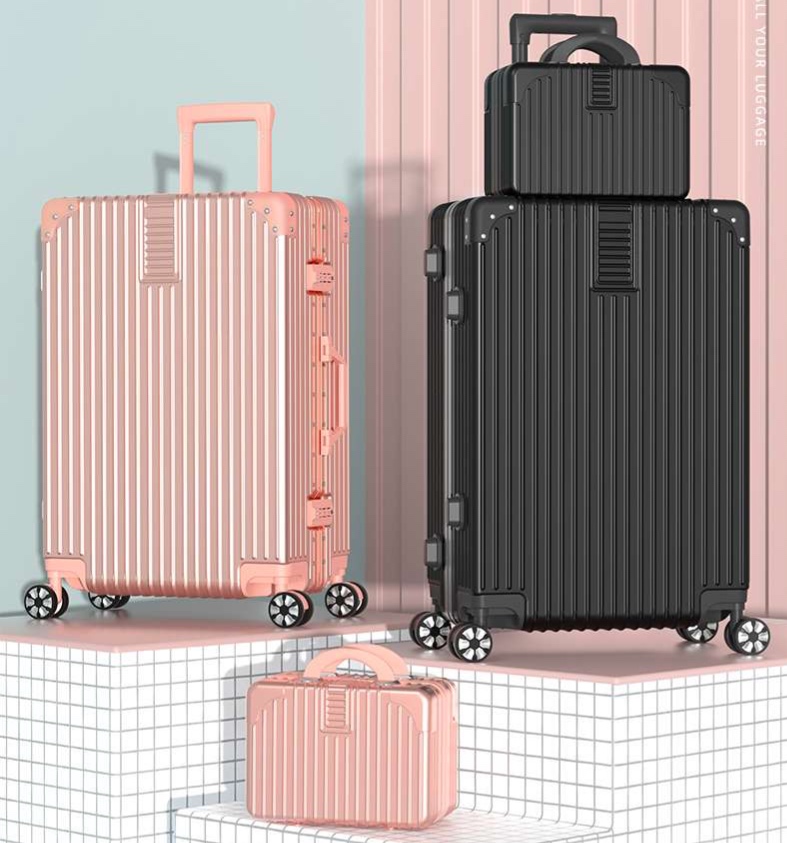 高級感あふれる縦縞デザインの旅行バッグ、頑丈な造りのキャリーケース。