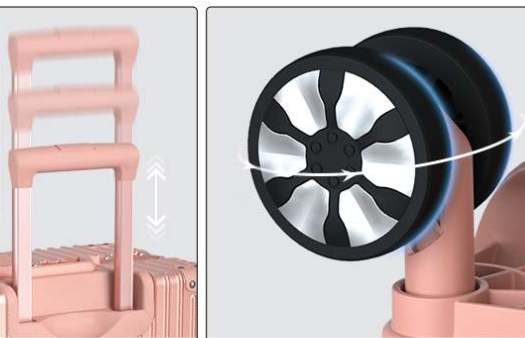 全方向回転する車輪と伸縮ハンドルで移動がスムーズ。