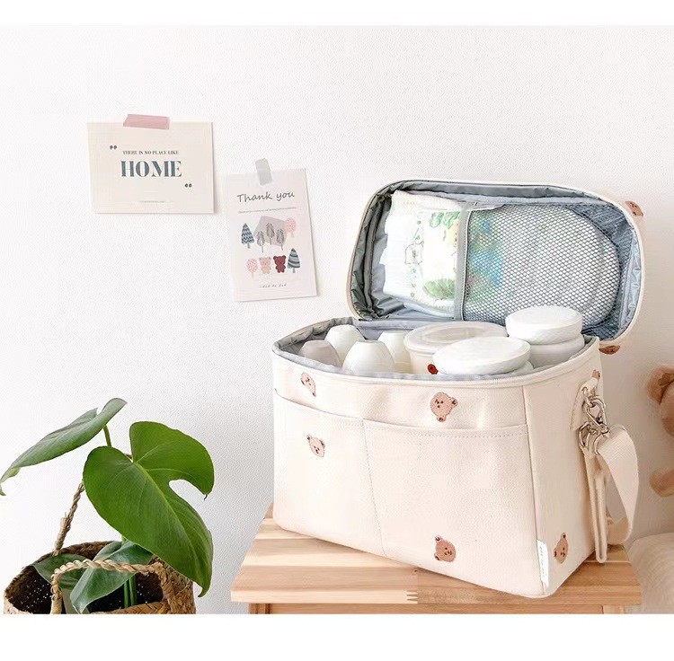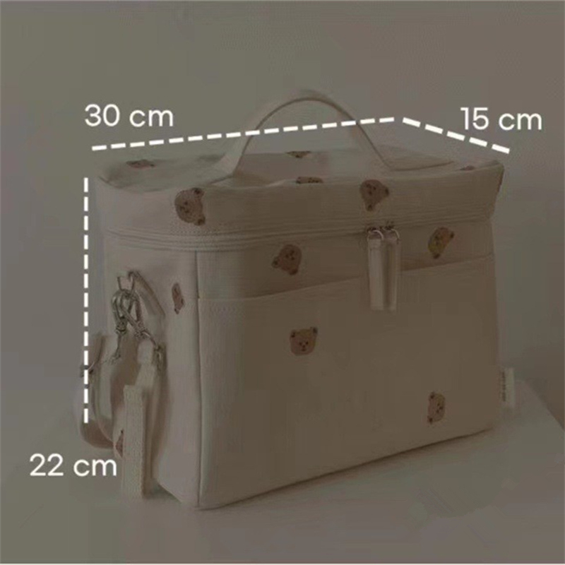 折りたたみ式でコンパクトに収納できる便利なトラベルポーチです。 荷物が増えた旅行の帰りには、旅行バッグごとキャリーケースの取っ手に装着可能。 可愛い小熊柄デザインで大容量の多機能収納が魅力的です。