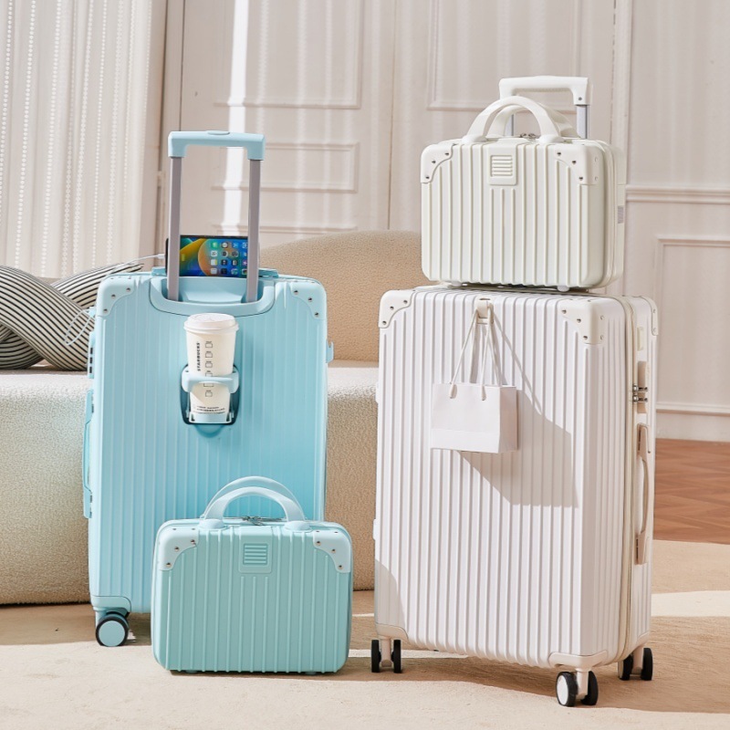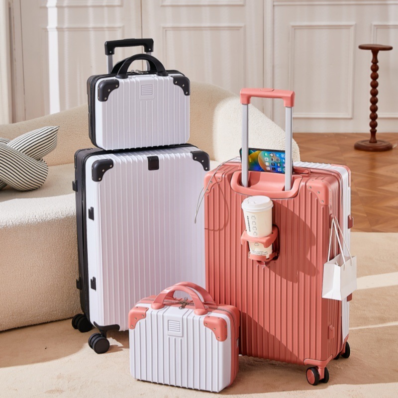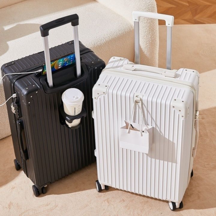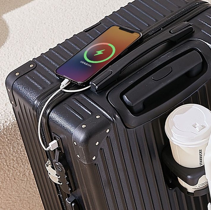大型キャリーケースには飲料ホルダーとスマートフォン収納ポケットが付いており、移動中も快適に過ごせます。