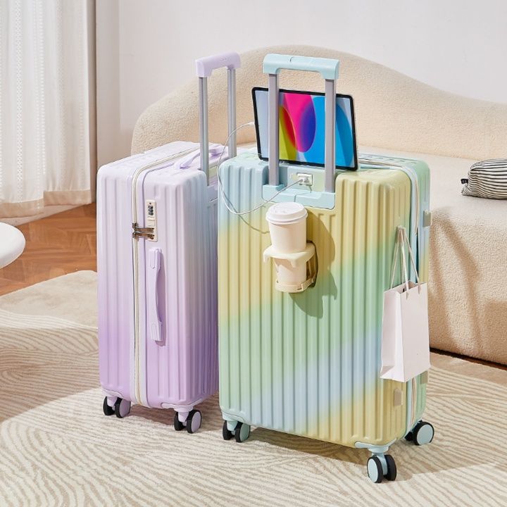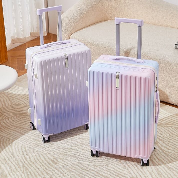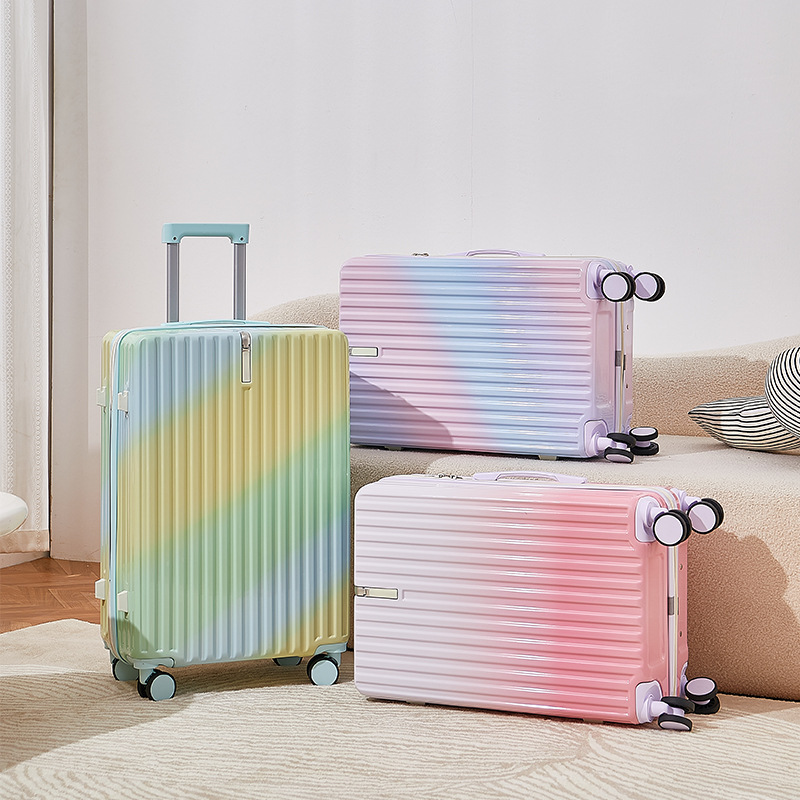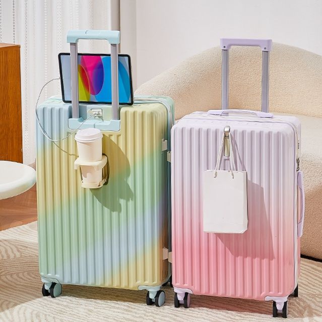 この旅行バッグは縦溝が美しいハードシェルタイプの多機能キャリーケースです。