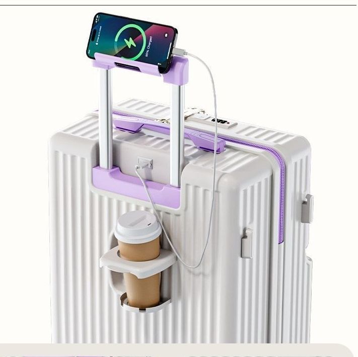ハンドル部分には携帯電話を置けるホルダーが付いており、充電しながらの移動も可能です。